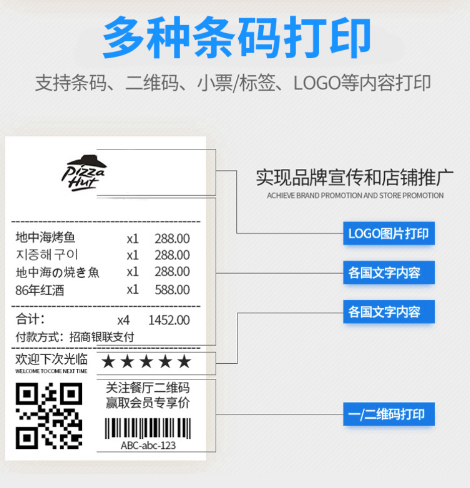打印纸宽 25.4~118mm(有效字体宽度:最大105mm)