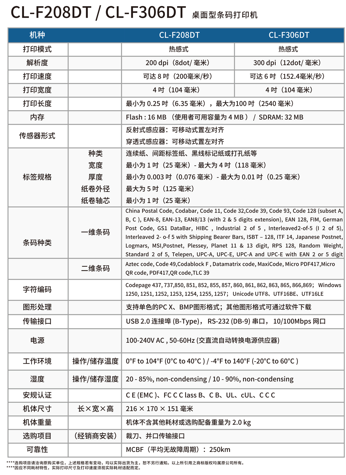 分辨率 203 dpi (8 dots/毫米) / 300 dpi(12 dots/毫米)