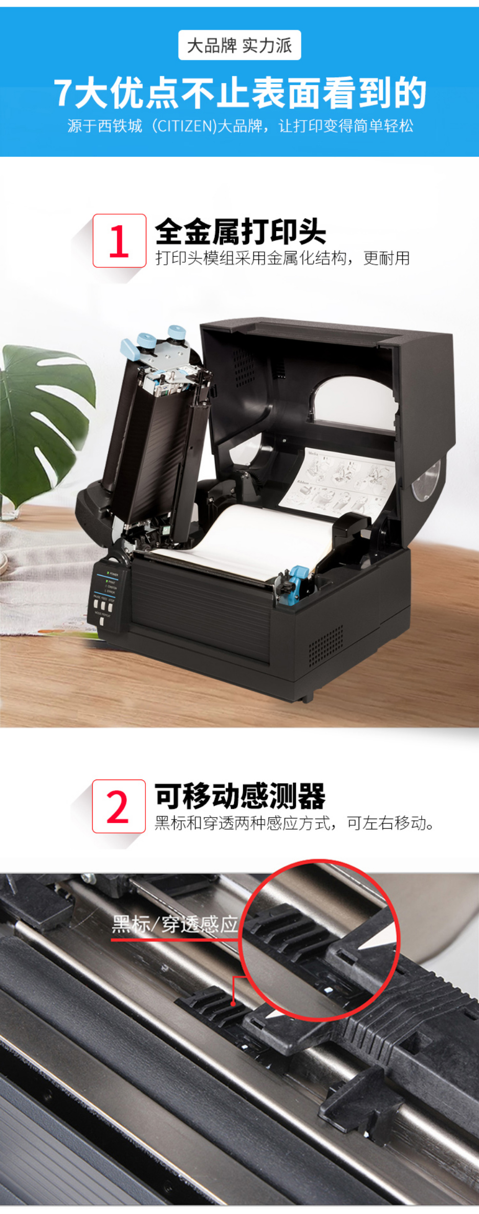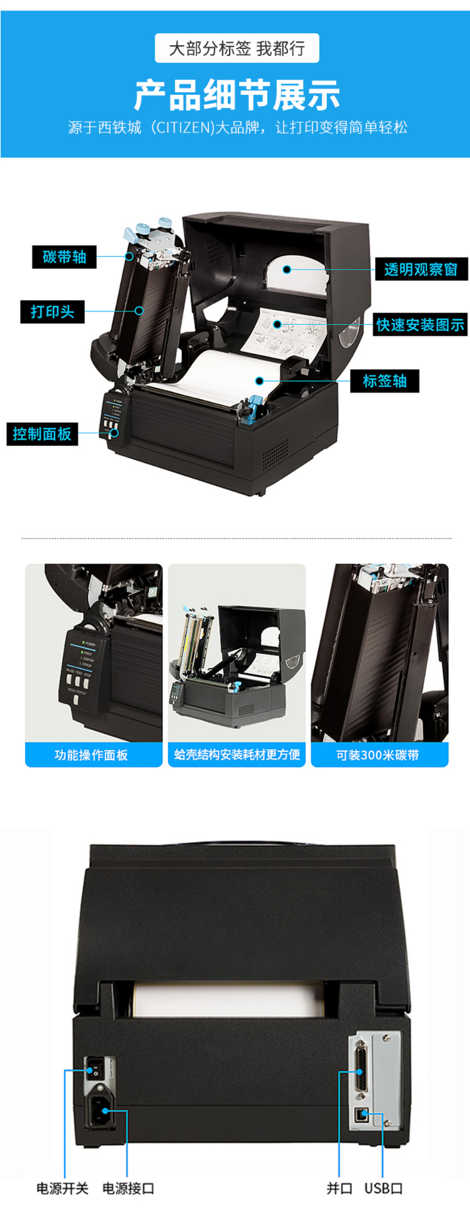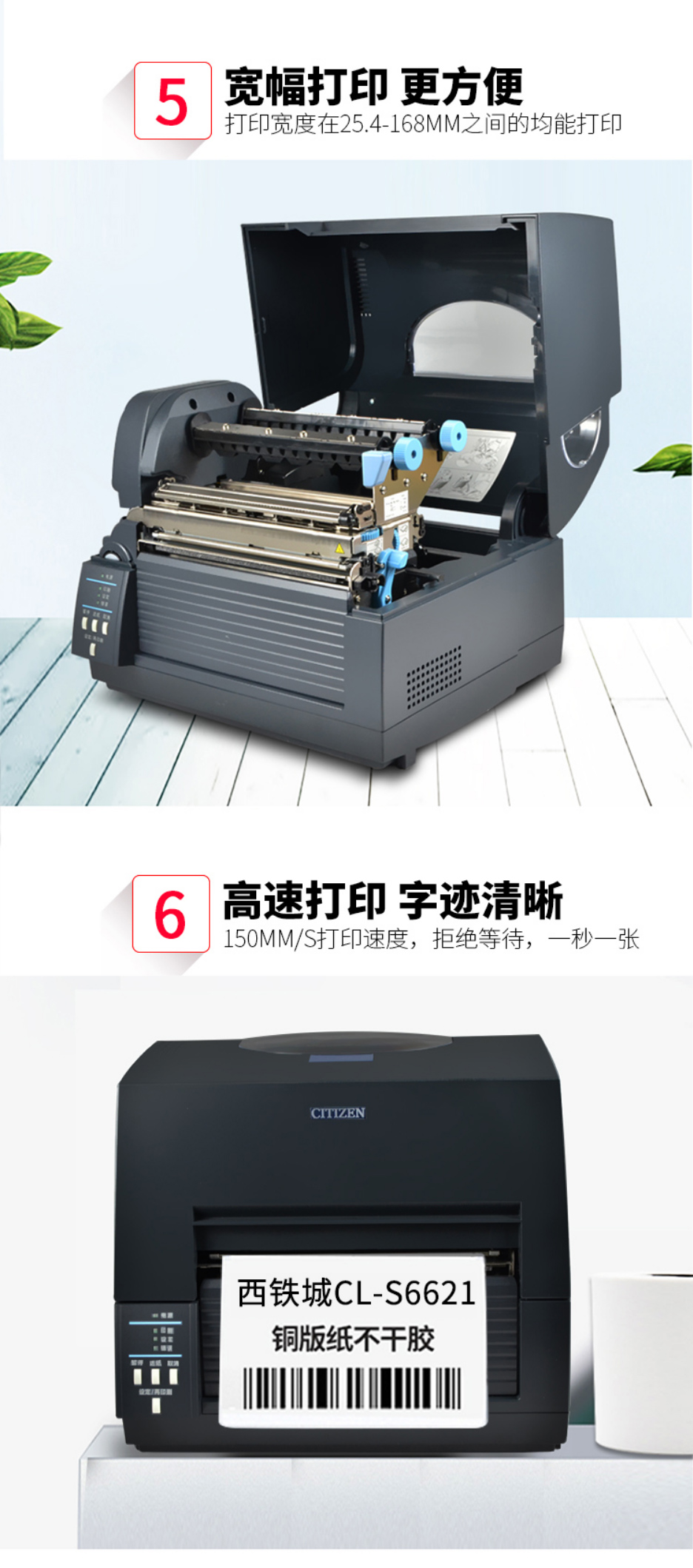 6吋打印速度    |    90°上翻式开启    |    纸捲空间更大    |    接口丰富